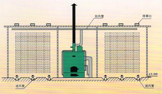 熱風式干燥設(shè)備工作原理是利用燃燒產(chǎn)生的熱能,加熱窯內(nèi)的空氣,由熱風爐頂部主風機將窯內(nèi)的空氣通過管道吸入爐體,將空氣加熱。再通過管道,送入窯內(nèi),由窯內(nèi)的循環(huán)風機不斷的循環(huán)對窯內(nèi)的木材均勻加熱。木材干燥過程中如需要蒸汽,可由熱風爐內(nèi)的蒸汽發(fā)生器提供,如果是一爐兩房或多房時,管道上裝有插閥,通過插閥的調(diào)節(jié)來控制窯內(nèi)的溫度。在干燥的過程中,由于木材要進行排濕,在窯頂上留有排濕孔(根據(jù)地區(qū)而定)和裝有抽濕機,用來調(diào)節(jié)排濕的快慢.